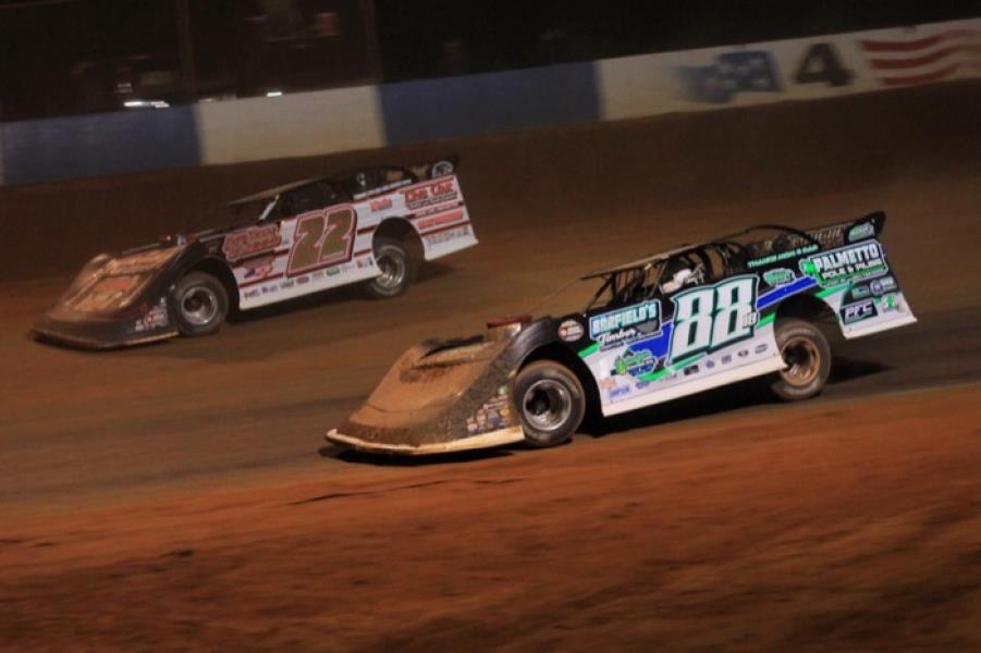 Friday night found Trent Ivey in action at Cherokee Speedway (Gaffney, S.C.) for the Mike Duvall Memorial. Drawing 39 World of Outlaws Morton Buildings Late Model Series entries, Trent followed up the fourth fastest time in his qualifying group with a second place finish in his heat behind Ross Bailes. Receiving the eighth-starting position for the $10,000-to-win A-Main via the redraw, Ivey faded two spots in the 50-lap affair to register a 10th place finish. (Blake Harris photo | H3 Photography)