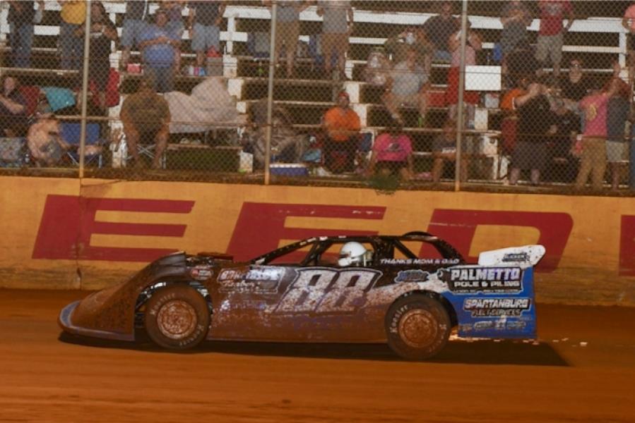 Trent Ivey was one of 23 Carolina Clash Super Late Model Series entries on hand at Harris Speedway (Rutherfordton, N.C.) on Saturday night for the Clyde Dedmon Memorial. After topping the charts in time trials, Ivey shot out to a comfortable lead in the feature when lapped-car cut down his right-rear tire on the final circuit, dropping him to 12th when the checkered flag flew. (Kevin Ritchie Photography)